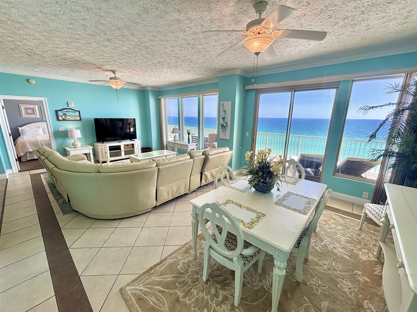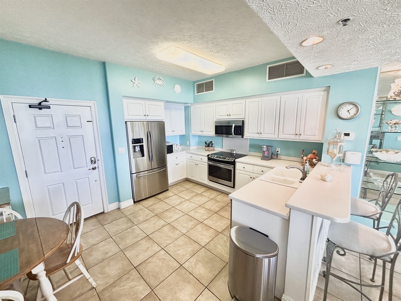 This property features an expansive private balcony overlooking the Gulf, complete with loungers and a dining table to soak up the views. Enjoy the resort’s incredible amenities including two large outdoor pools (one heated seasonally), two hot tubs, a kiddie pool, tiki bar, fitness center, and direct beach access—all within a gated community with 24-hour courtesy security.